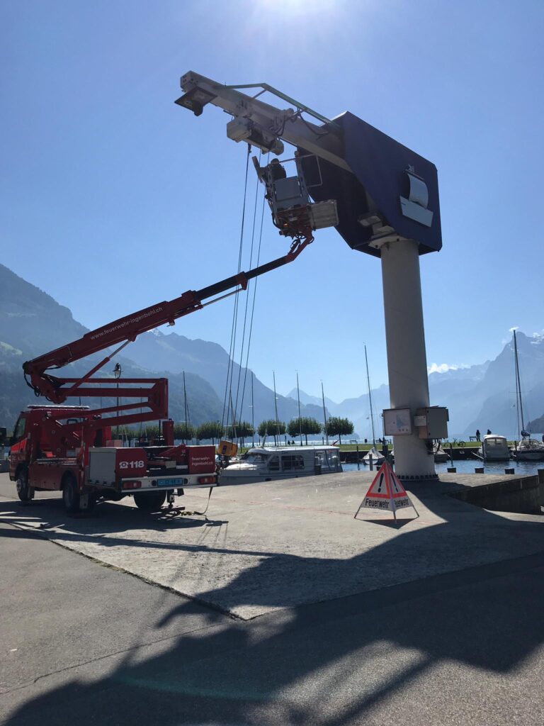 Gestern Donnerstag wurde der Hafenkran im Föhnhafen repariert und steht ab sofort wieder für Lastenhübe zur Verfügung.